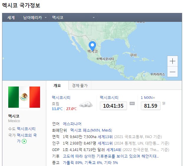 멕시코는 북아메리카 대륙의 남부에 위치한 다양한 문화와 역사를 지닌 국가입니다. 멕시코의 수도는 멕시코시티이며, 면적 면에서는 1,964,375 km²로 미국, 캐나다에 이어 북아메리카에서 세 번째로 큰 국가입니다. 인구는 약 1억 명 이상으로, 스페인어가 공용어로 사용되지만, 인디언과 메스티소(Mestizo) 등 다양한 인종과 문화가 혼재하고 있습니다.
