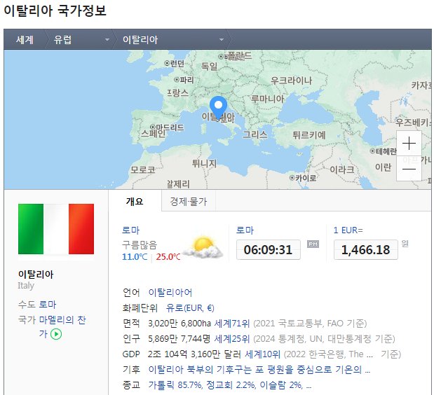 이탈리아는 그 아름다운 풍경, 풍부한 역사, 예술, 음식으로 유명한 유럽의 명문 국가입니다. 지중해에 위치한 이 나라는 지리적으로 다양한 지형과 기후를 가지고 있으며, 각기 다른 지역마다 고유한 매력을 자랑합니다. 이탈리아는 세계적으로 유명한 도시들을 포함하고 있으며, 그중에서도 로마, 피렌체, 베네치아, 밀라노 등은 미술, 건축, 역사, 패션 등 각 분야에서 세계적으로 중요한 역할을 하고 있습니다.